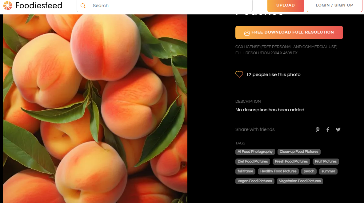 이 사이트는 실제 음식을 촬영한 사진과 ai 사진이 있습니다. 과일, 야채, 음료, 메인 요리 디저트 등 생생하고 다양한 카테고리의 음식 사진을 제공합니다. 음식 사진에 특화되어 있기 때문에, 특정 음식이나 요리 관련 이미지를 찾고 있는 경우에 특히 유용합니다.