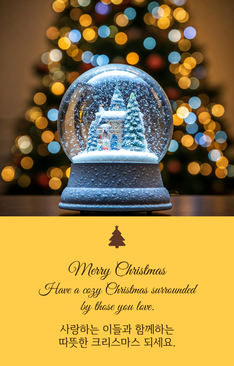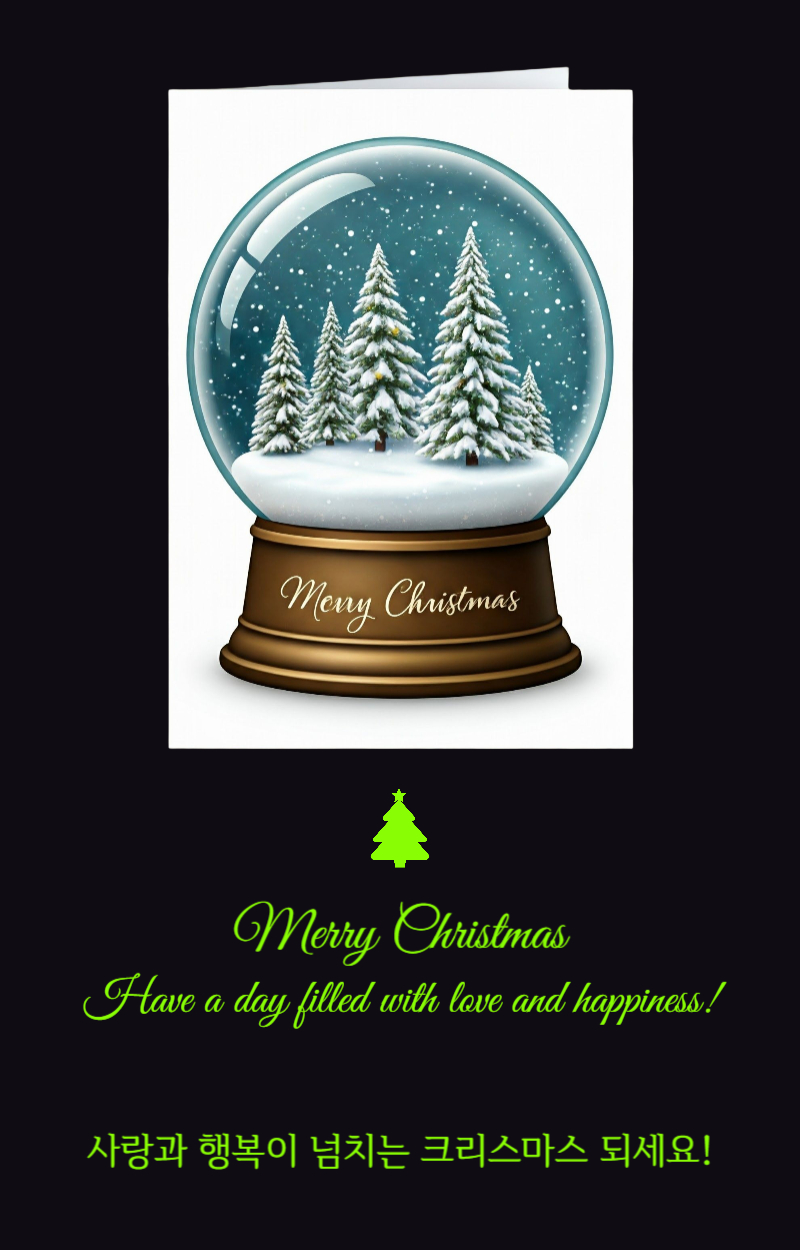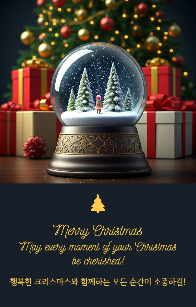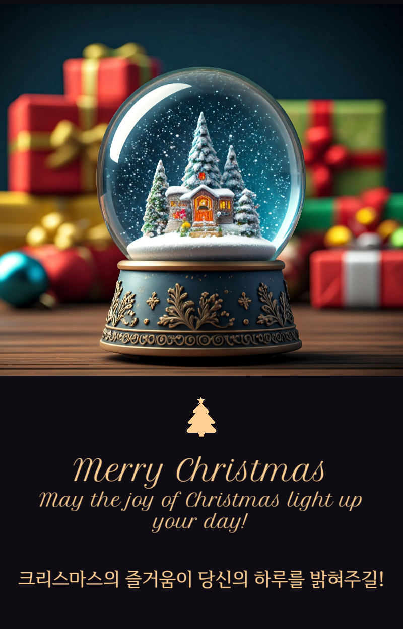 크리스마스의 마법이 당신의 마음을 기쁨으로 채우고, 당신의 집을 사랑으로 가득 채우길 바랍니다. 가족과 친구들과 함께하는 축복과 소중한 순간이 가득한 시즌이 되길 기원합니다!