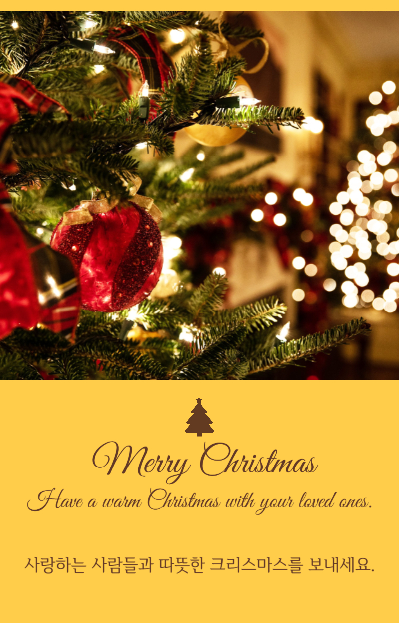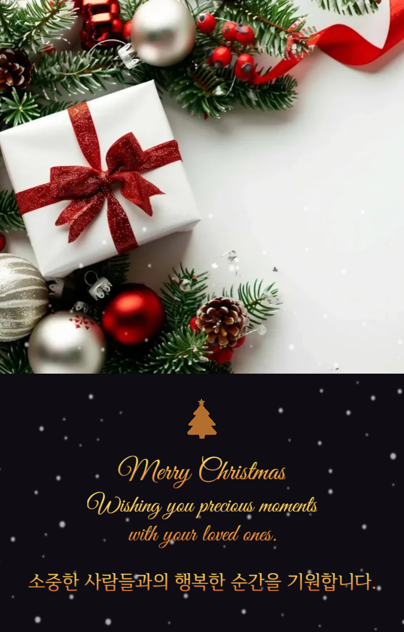 사랑과 기쁨이 가득한 크리스마스를 기원합니다. 이 특별한 날이 당신과 당신의 가족에게 행복한 기억으로 남길 바랍니다!