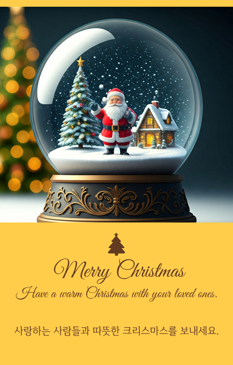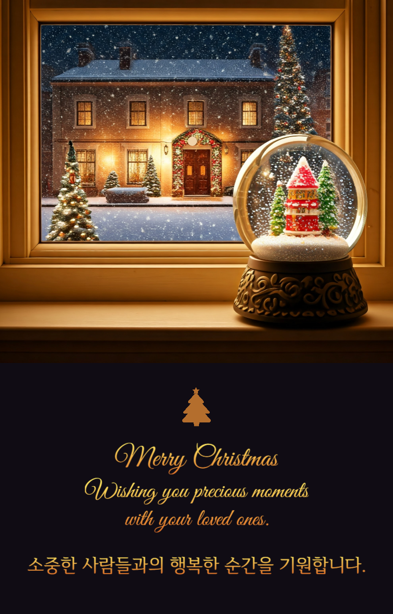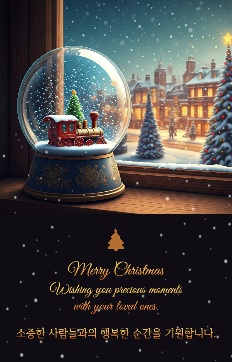 메리 크리스마스! 이 축제의 계절이 사랑하는 사람들과 더 가까워지고, 당신의 마음을 기쁨과 행복으로 가득 채우길 바랍니다. 특별한 순간을 만끽하세요!