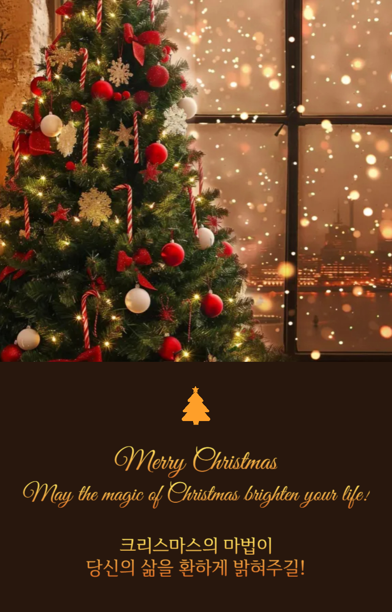 크리스마스의 마법이 당신의 마음을 따뜻하게 하고, 사랑하는 사람들과의 소중한 순간들이 가득하길 바랍니다. 행복한 크리스마스 되세요!