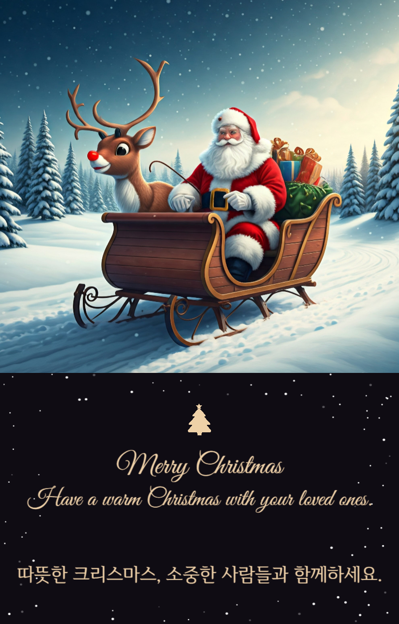 크리스마스의 기쁨이 당신의 마음을 가득 채우고, 사랑하는 사람들과의 소중한 순간들이 가득하길 바랍니다. 메리 크리스마스!