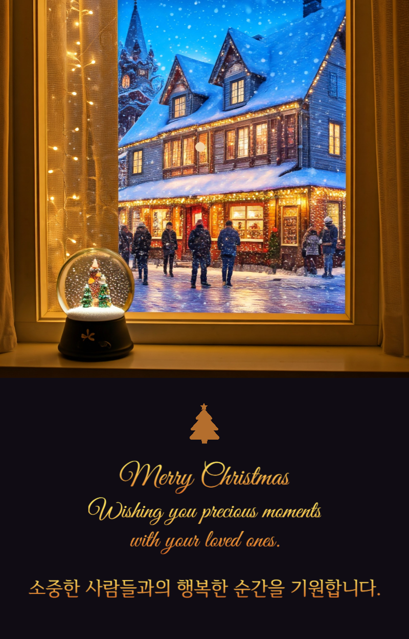 이번 크리스마스에는 사랑하는 사람들과 함께하는 소중한 순간들이 가득하길 바랍니다. 행복한 크리스마스와 즐거운 연말 보내세요!
