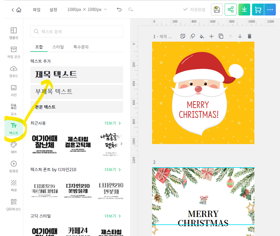 4) 왼쪽 패널에서 텍스트를 클릭하여 글자를 추가할 수 있어요.