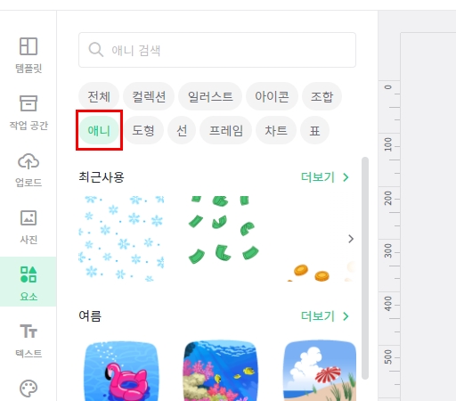 좌측에 있는 요소를 클릭하세요. 클릭하면 "애니" 항목이 보입니다. "애니" 클릭