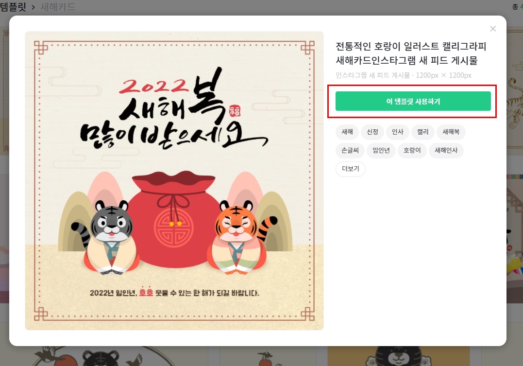 검색창이 나옵니다. 새해카드를 입력하고 검색해주세요. 그러면 새해카드 이미지가 나옵니다.